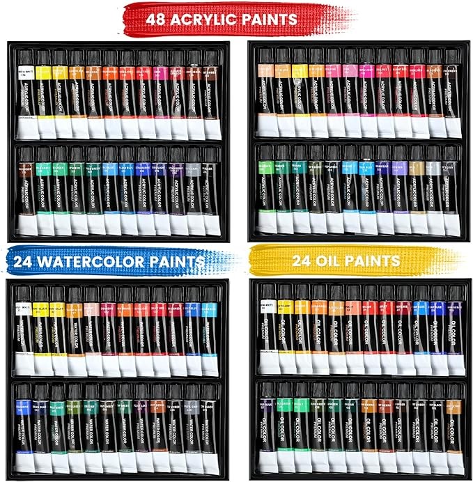 Spend Less, Enjoy More: Professional painting material collocation solution to meet various painting requirements for acrylic, watercolor and oil painting. With this Premium quality paint set, you can save lots of time on picking various painting supplies and it is more cost-effective than buying separately.