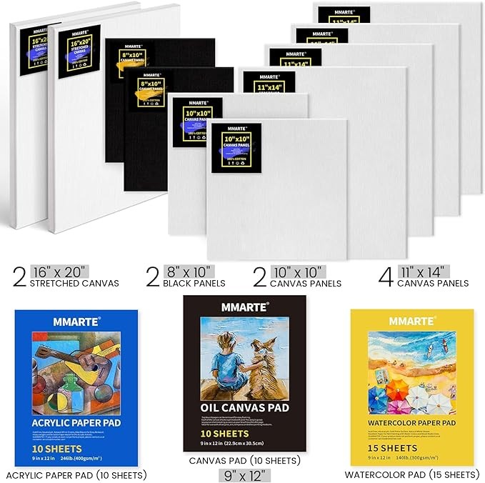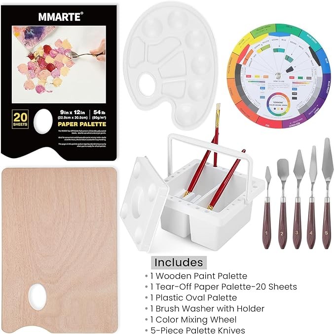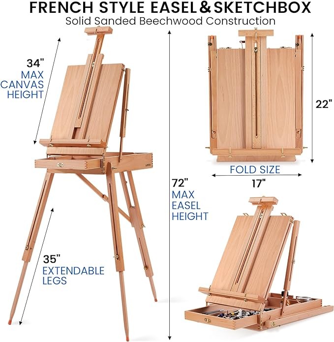 All-In-One Artist Painting Set: This 155-Piece artist painting set includes everything you need to start creating beautiful artwork. Set include:1 Field & Studio French Sketchbox Easel. 48 colors acrylic paints, 24 colors watercolor paints, 24 oil paints. 15 acrylic brushes,10 oil brushes,10 watercolor brushes. Stretched canvas & canvas panel set. 1 canvas pad,1 watercolor paper pad, 1 acrylic pad. 3 paint palettes. 5 palette knives. 1 color mixing well. 1 paint brush basin.