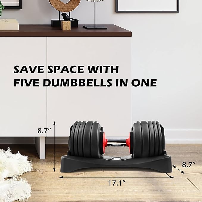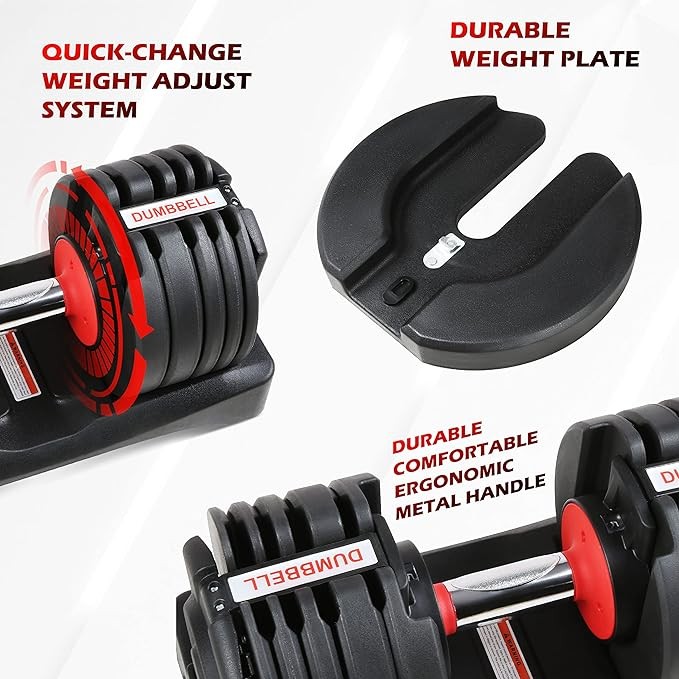 • 1) All In one compact durable fast adjustable dumbbell set, easy to use and store.