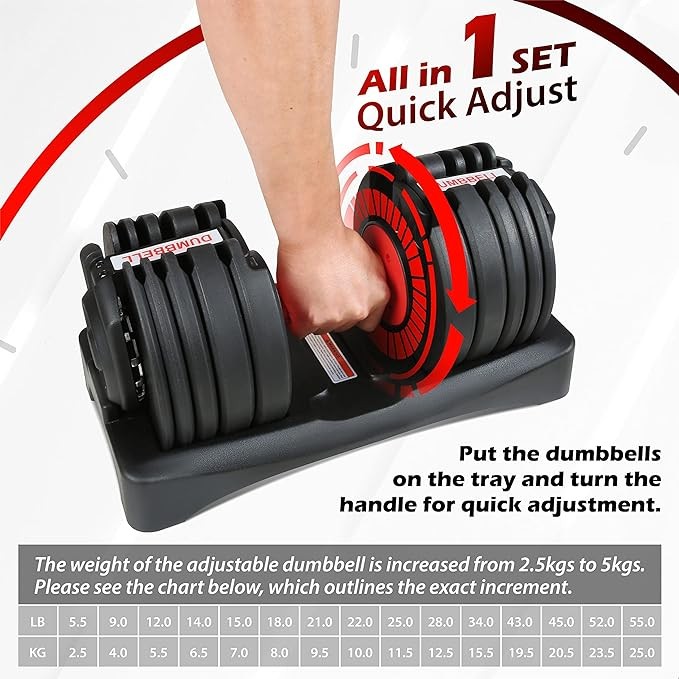 All in One Fast Adjustable Dumbbell Set from 5.5LB to 55LB, Quick Changing Weight by Turning Handle, For Home Gym Full Body Workout Fitness