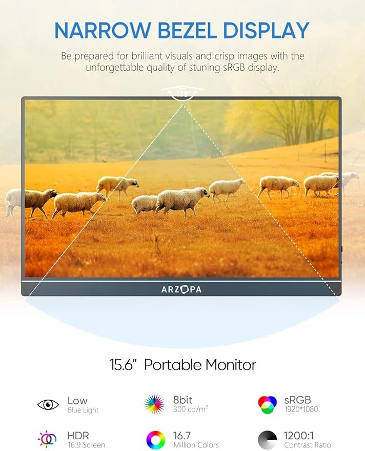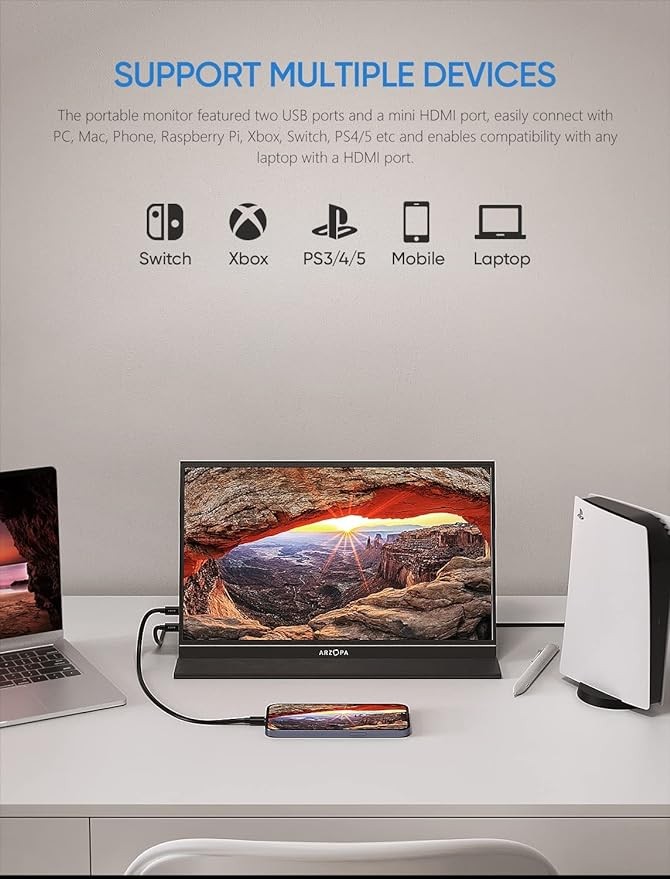 [Second Monitor] The ARZOPA portable monitor can be used as your second monitor to increase productivity. You can work and multitask simultaneously with this monitor.