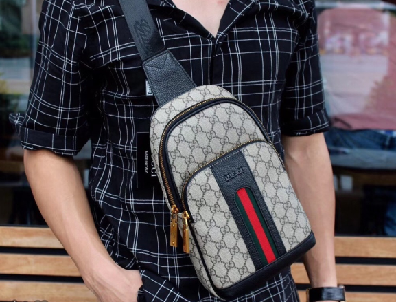 [Gucci] Gucci men's shoulder bag, chest bag, crossbody wallet, men's bag, classic print, quick mobile phone bag design, adjustable shoulder strap, multiple compartments, wear-resistant birthday gift, multi-functional, simple, practical, lightweight and multi-functional