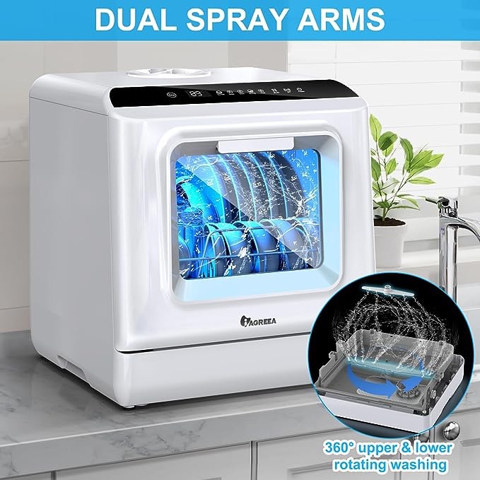 IAGREEA Portable Countertop Dishwasher, No Hookup Needed, Compact Dishwasher With 5-Liter Built-in Water Tank,5 Programs, 360° Dual Spray