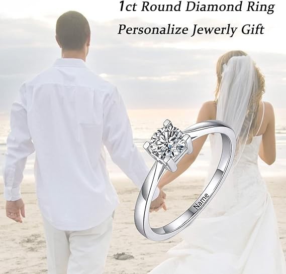 • 【 CUSTOMIZE STEP 】: Please Click on "Customize Now" on the right, choose this diamond round cut engagement ring size and favorite font to finish design your own special rings. Please choose the correct size before place the order to avoid Return or Exchange, You can refer to the ring size picture in the product gallery.