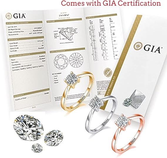MRENITE Solid 10K/14K/18K Gold 1ct GIA Certified Diamond Engagement Rings Round Cut Ring Solitaire Promise Ring Free Engraving Name Wedding Jewelry Gifts for Women (SI2-SI3 Clarity Very Good Cut)