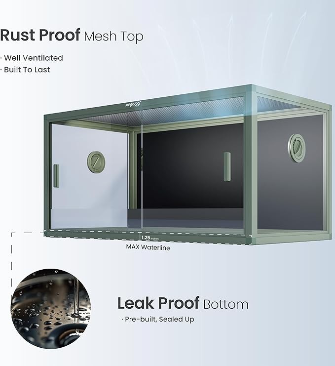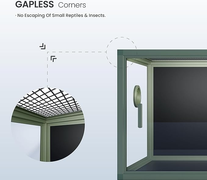 • 【Easy Maintenance】Front opening reptile tank with door handles included for easy cleaning & feeding. No more suction problems or fingerprints all over the doors. Substrate barrier to keep substrate out of the grooves.