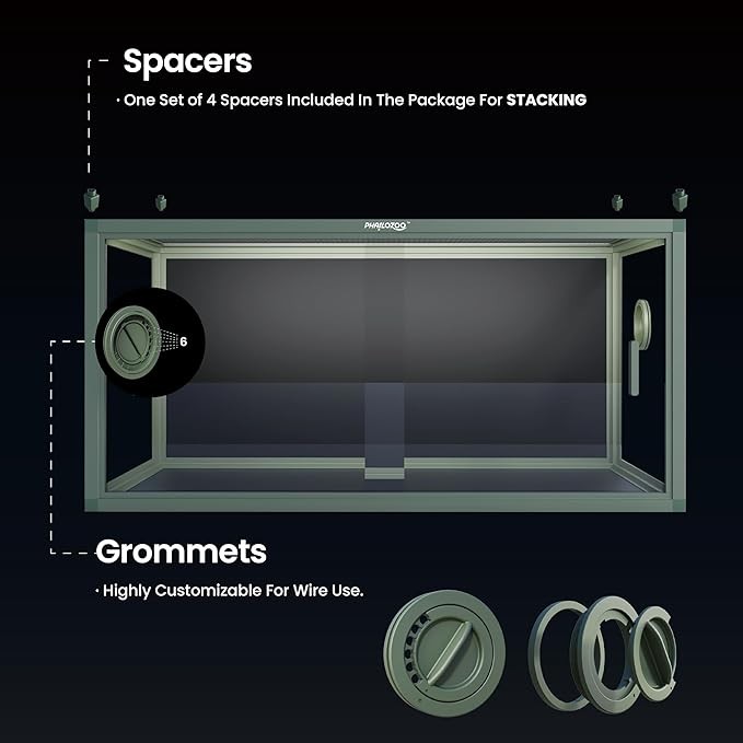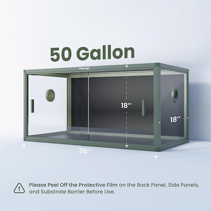 • 【Size Matters】Phailozoo 50 Gallon reptile tank is measuring 36''Lx18''Wx18''H, perfect for desert/rainforest/semi-aquatic bioactive tank, such as gecko tank, snake tank, and frog terrarium.