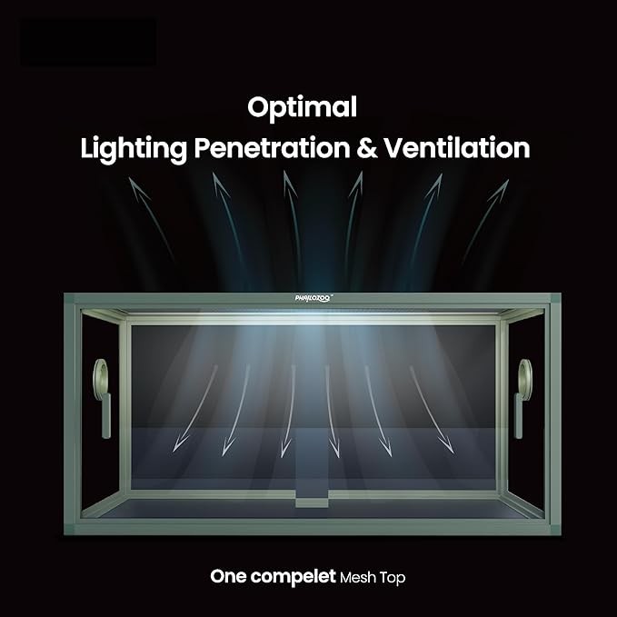 • 【Worry Less】NO GAPS FOR ESCAPING with fully closed structure and rigid tempered glass doors. You can also put a lock in between doors for higher-level security. Top screen ventilation allows better air circulation for reptiles.