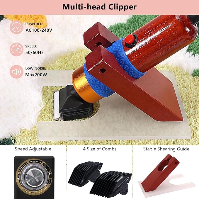 • Cut & Loop Pile: 2 in1 rug tufting gun can effortlessly transition between cut pile and loop pile modes, all it takes is the change the scissor head. It reaches speeds of 4-25 stitch/sec, equipped with a 360°supportive auxiliary handle, providing you with comfort and convenience during operation. It helps achieve accurate and consistent results every time