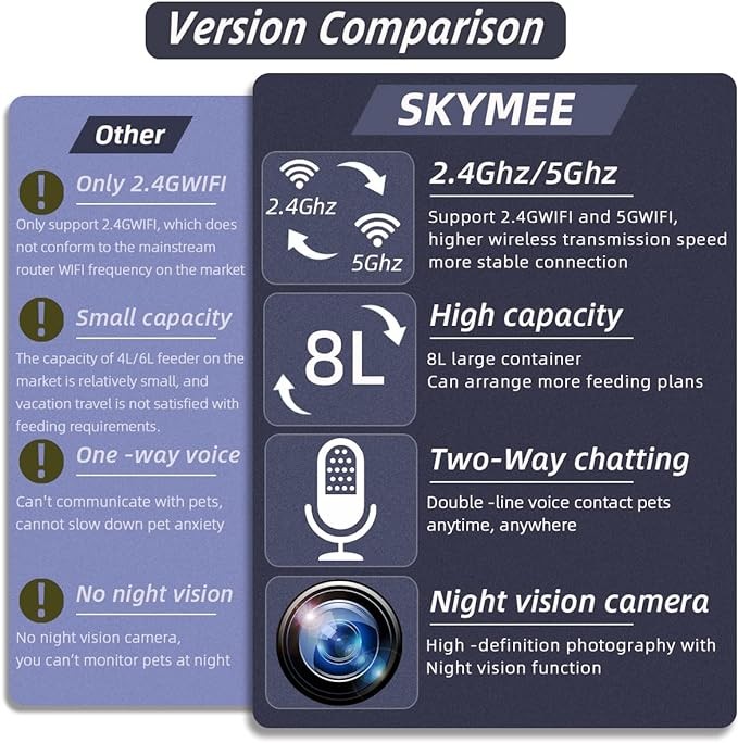 SKYMEE 8L/12L 2.4G & 5G WiFi Smart Automatic Pet Feeder Food Dispenser for Cats & Dogs-1080P Full HD Pet Camera Treat Dispenser with Night Vision and 2-Way Audio
