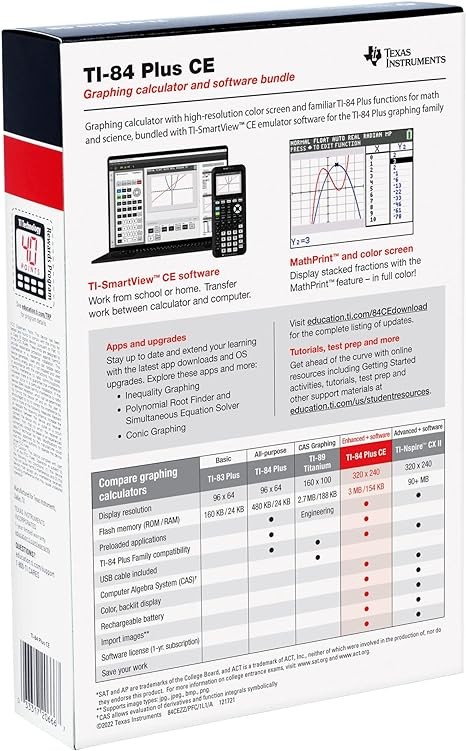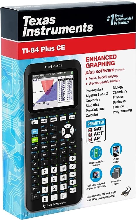 Texas Instruments TI-84 Plus CE Color Graphing Calculator, Black 7.5 Inch