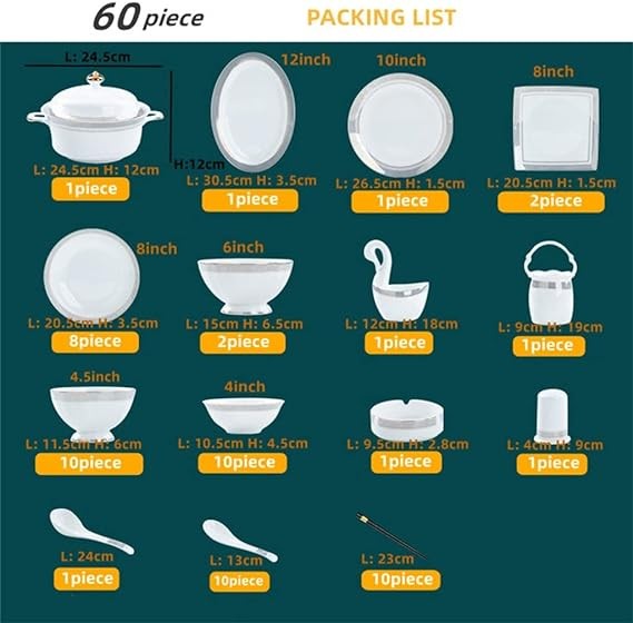 ZJHYXYH 60 Piece Bone China Tableware Sets Food Bowl Sushi Dishes Ramen Plates Dinner Set Utensils For Kitchen Accessories